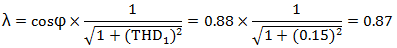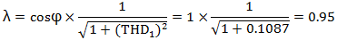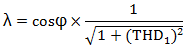 例3:某照明配电回路,所接光源均为25W及以下的LED灯和荧光灯,其cosφ=1,高次谐波电流符合GB17625.1-2012的规定,求λ值。