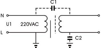 图1 隔离变压器的分布电容