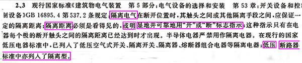 由以上两本规范可知,具备隔离功能的断路器是隔离电器的一种。