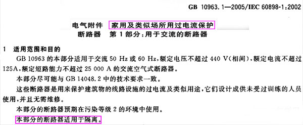这本规范明确规定了家用型断路器要具备隔离功能。