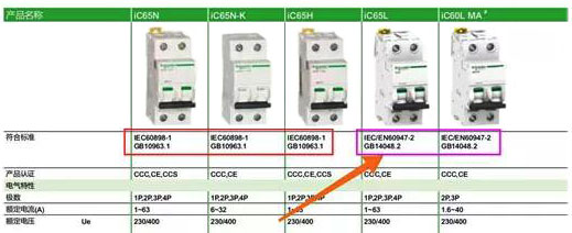 各位同行平时做的小功率电机一般都是用iC65的D型微断+热继电器实现的电机保护吧,严格来说是不符合规范要求的,若用施耐德微断需要用单磁型的iC60L-MA系列,也就是只有短路保护功能的工业用微型断路器,如下图所示(标准GB10963.1适用于家用交流断路器,GB14048.2适用于工业用微型断路器、塑壳和框架断路器)。