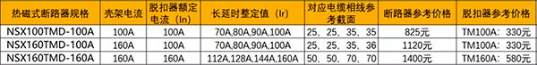 以广大设计师最容易选择的情况比对:施耐德规格为NSX100(壳架电流)TMD-100A(脱扣器额定电流)和NSX160(壳架电流)TMD-100A(脱扣器额定电流)和NSX160(壳架电流)TMD-160A(脱扣器额定电流)。