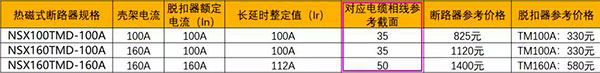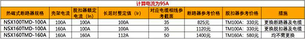 方案二NSX160TMD-100A在考虑20%的余量情况下,又考虑了60A(约90%)余量,但是这60A余量是不能直接拿来用的,没有即战力,只能更换脱扣器才可,这样多出来的脱扣器成本(TM160为580元,TM为330元)成了摆设。