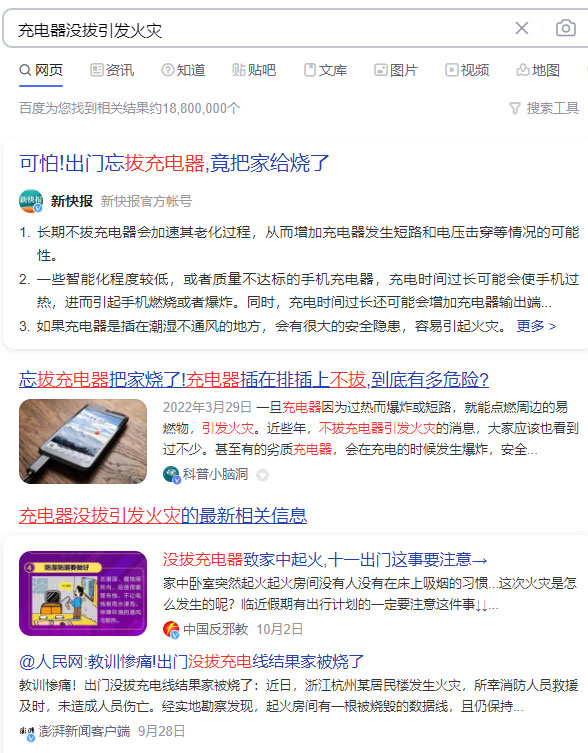 其次存在火灾风险。这种案例已经发生多起,尤其网上购买的劣质充电器,火灾风险更大。不能掉以轻心。据光明网报道,今年9月,杭州某小区居民因充电器没拔引发火灾,所幸没有造成人员伤亡。